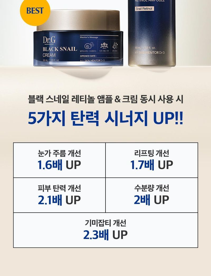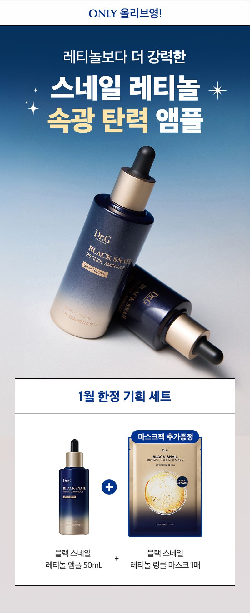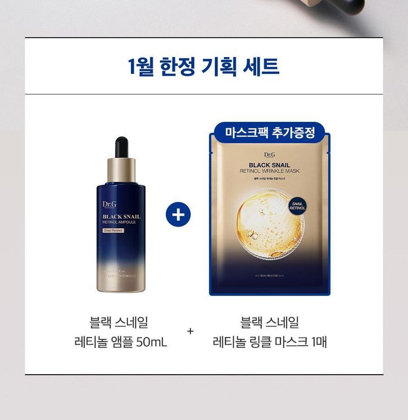 (24.12.31 ~ 25.01.31)韓國 Olive Young 特別優惠套裝 -Dr.G Black Snail Retinol Ampoule黑蝸牛視黃醇安瓿 50ml 套裝 (+ 1 張抗皺面膜)