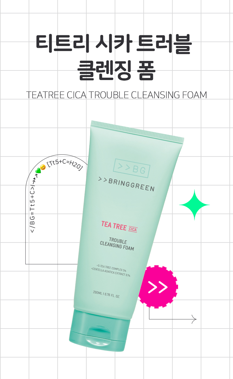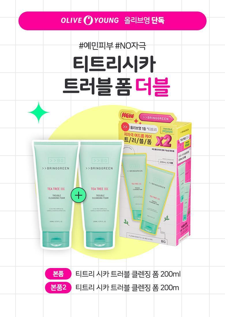(24.12.31 ~ 25.01.31)韓國 Olive Young 特別優惠套裝 -BRINGGREEN Tea Tree Cica Trouble Cleansing Foam茶樹積雪草祛痘潔顏泡沫 200mL(1+1特別套裝)