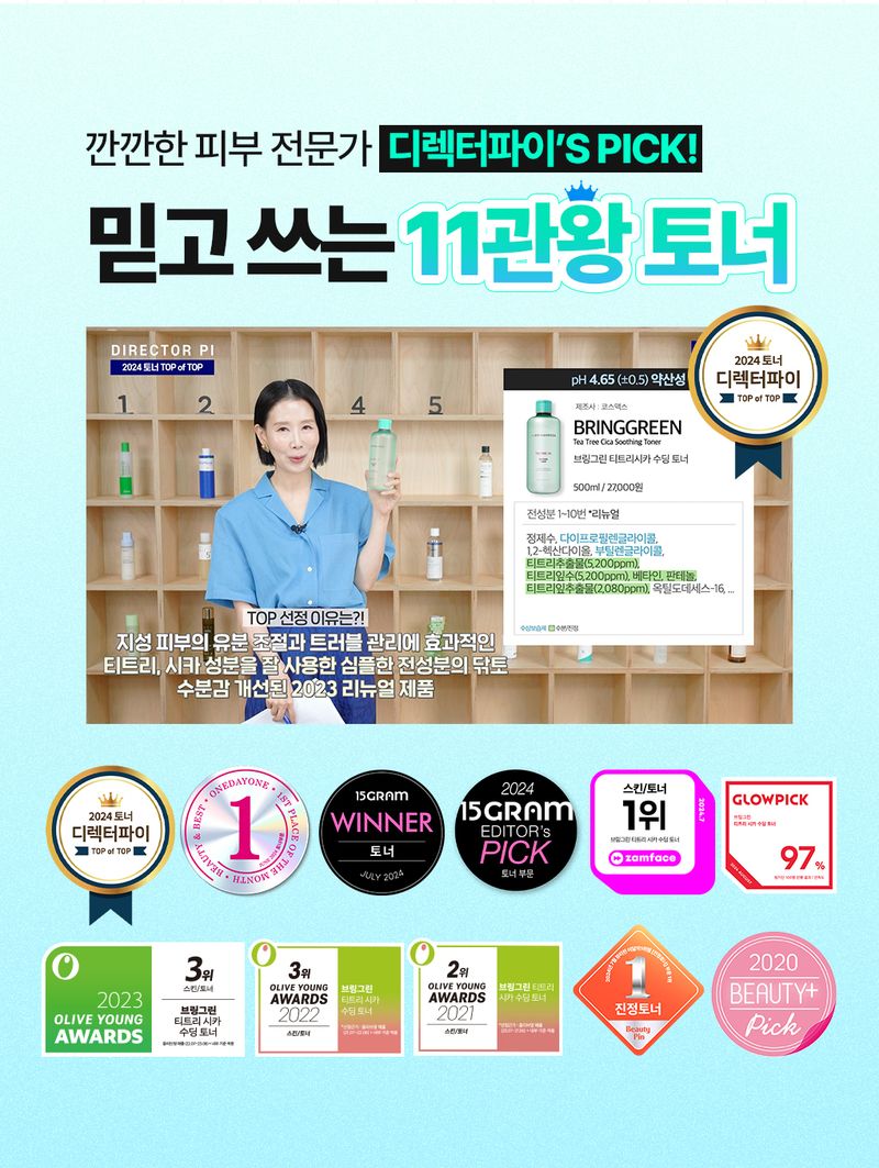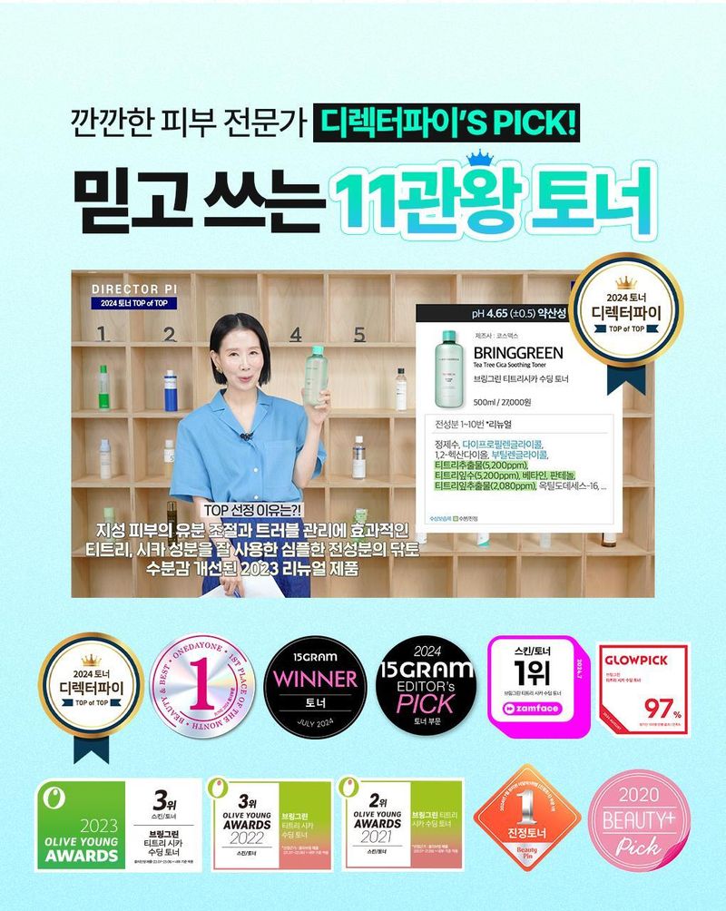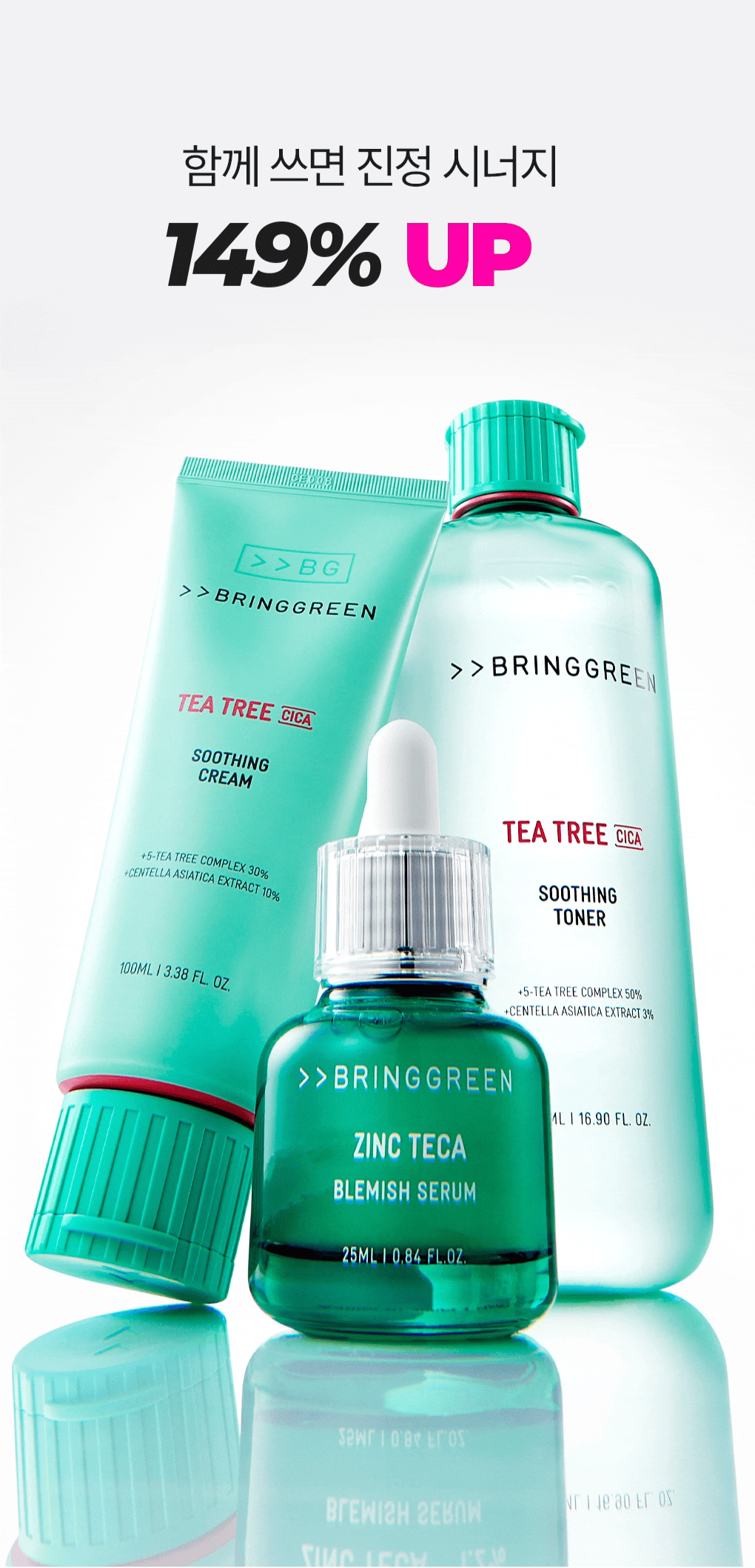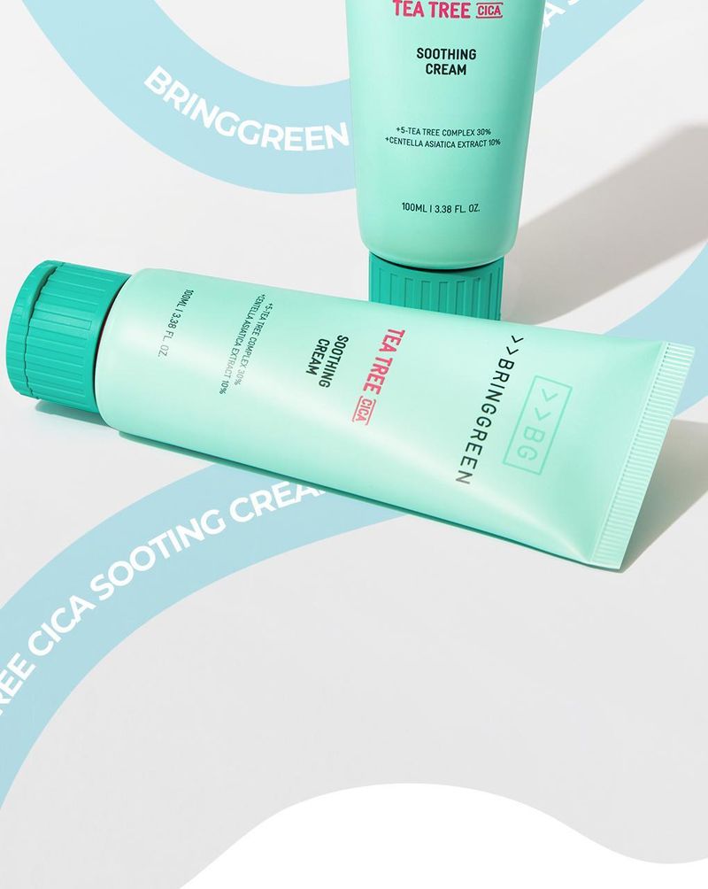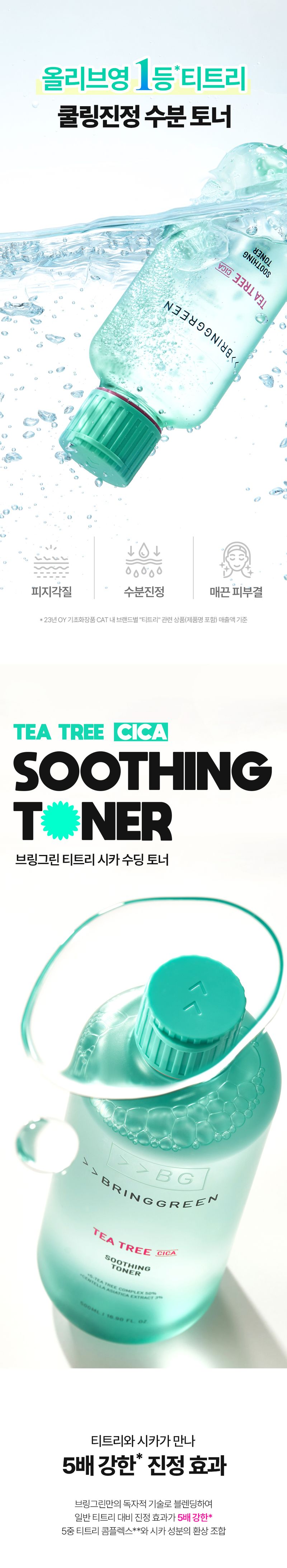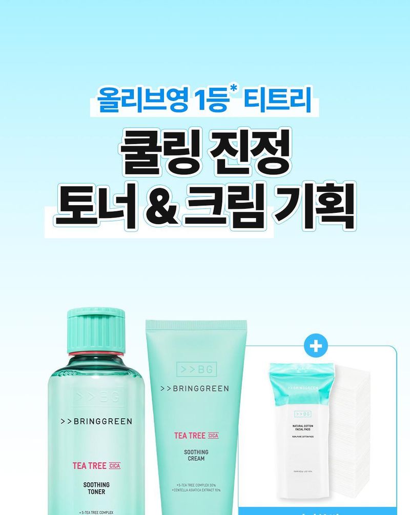 韓國 Olive Young 特別優惠套裝 -BRINGGREEN Tea Tree Cica Soothing Toner & Cream茶樹積雪草舒緩爽膚水與乳霜套裝(送化妝棉)