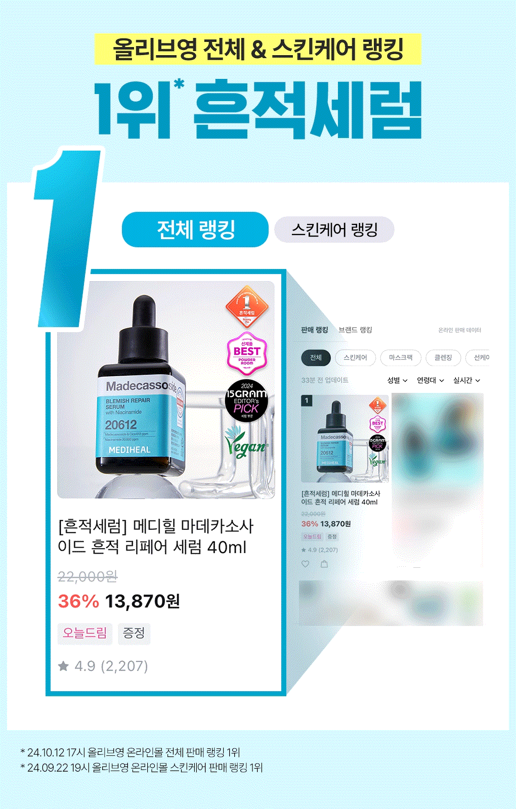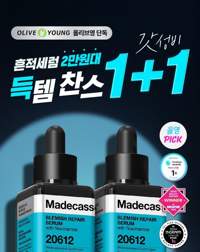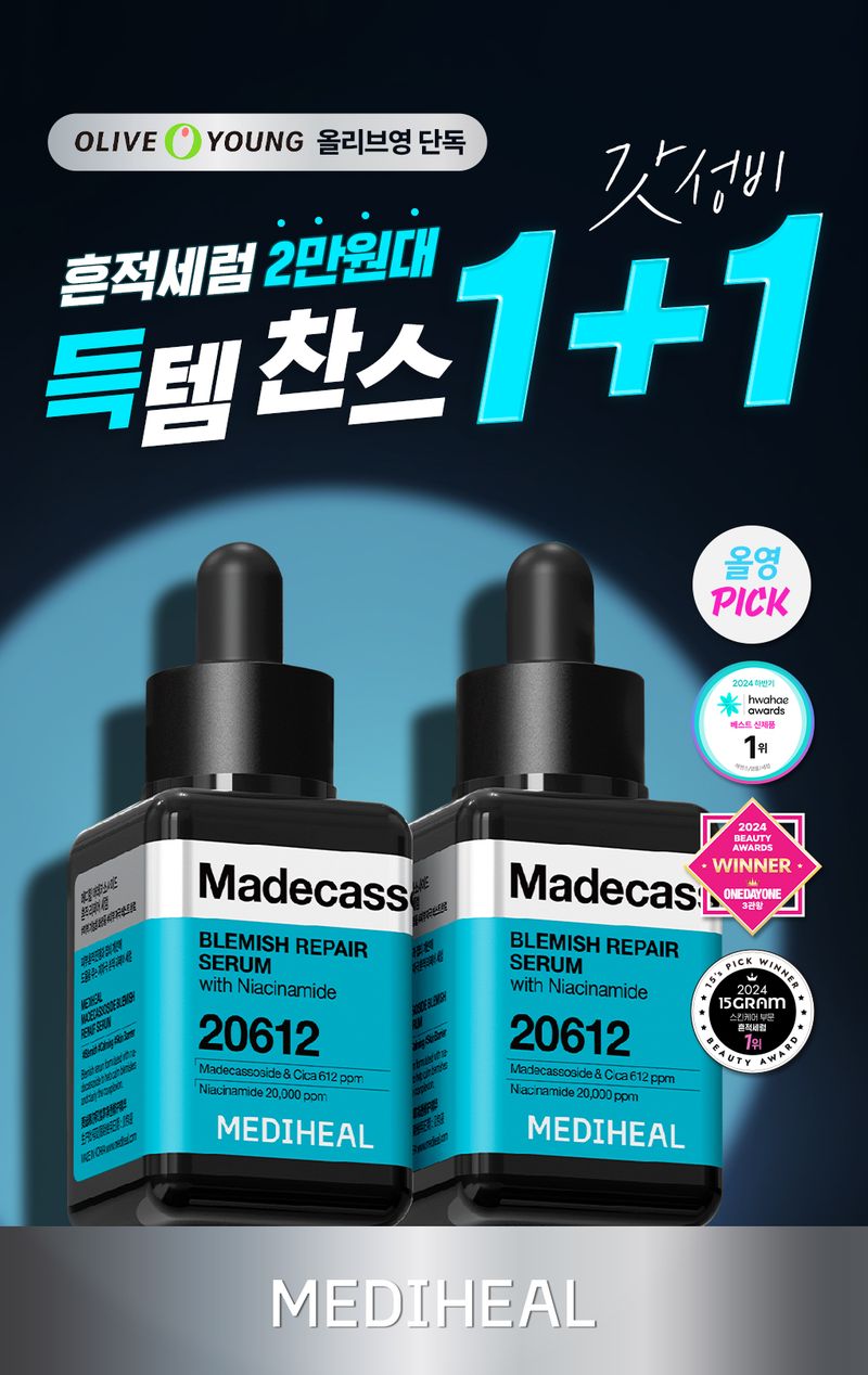 (24.12.31 ~ 25.02.28)韓國 Olive Young 特別優惠套裝 -MEDIHEAL Madecassoside Blemish Repair Serum積雪草苷淡斑修補精華 40ml(1+1特別套裝)