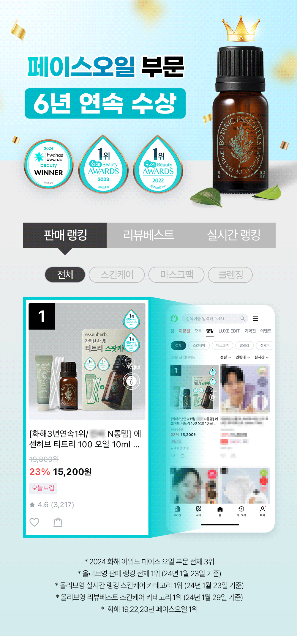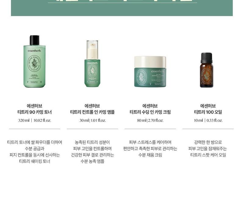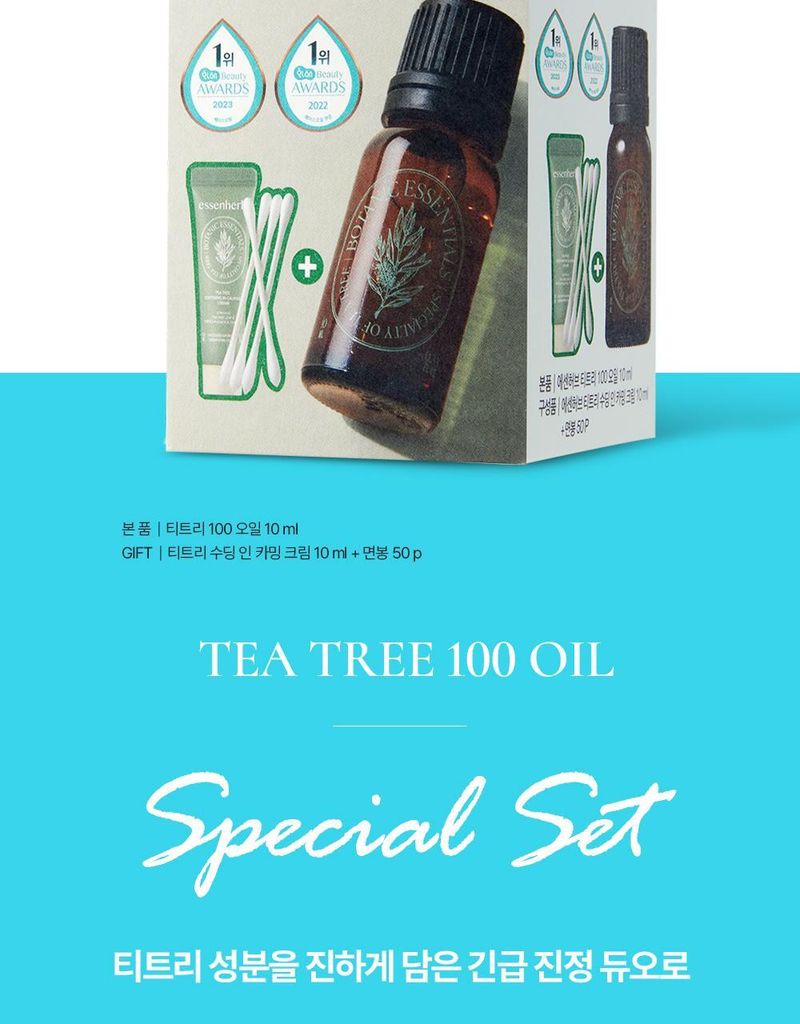 (25.01.13 ~ 25.01.31)韓國 Olive Young 特別優惠套裝 -EssenHERB Tea Tree 100 Oil茶樹100精油10mL特別套裝 (送乳霜10mL+棉花棒50支)