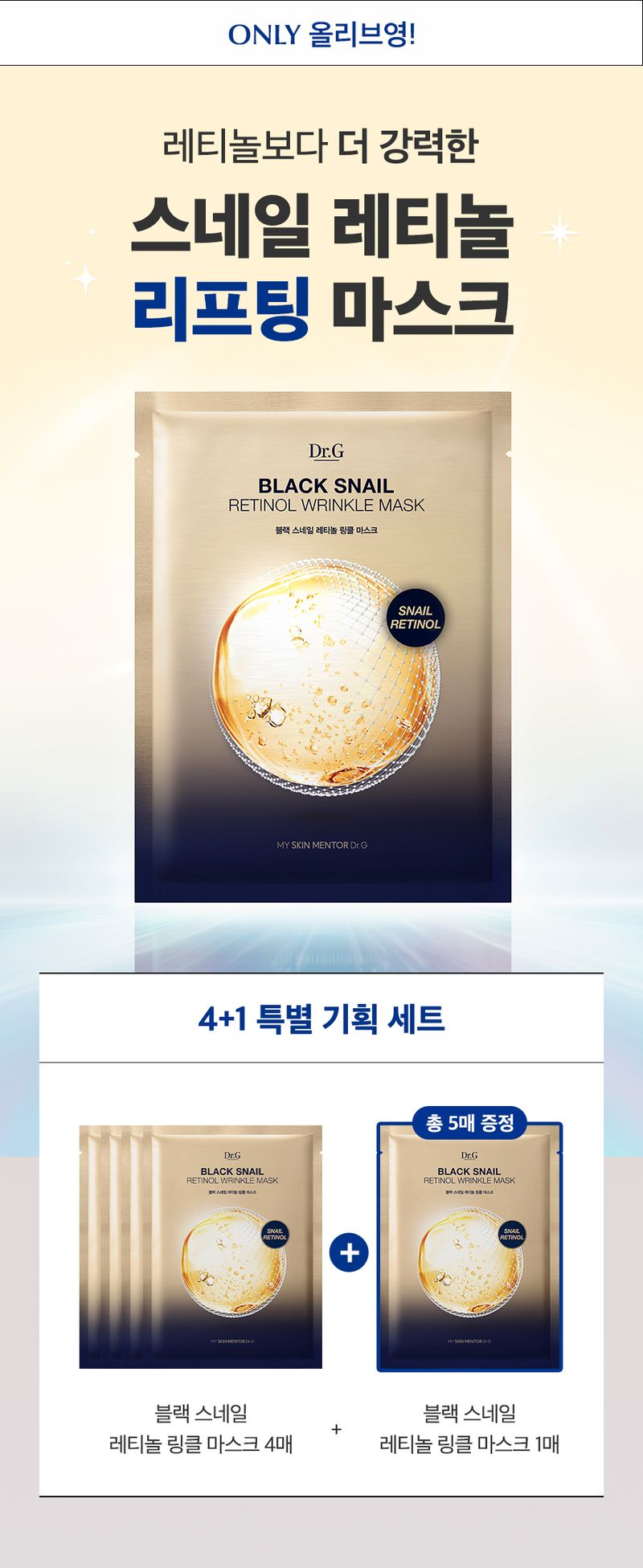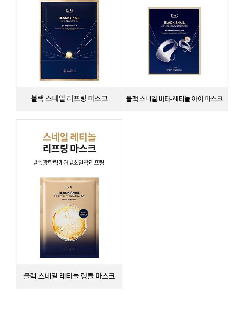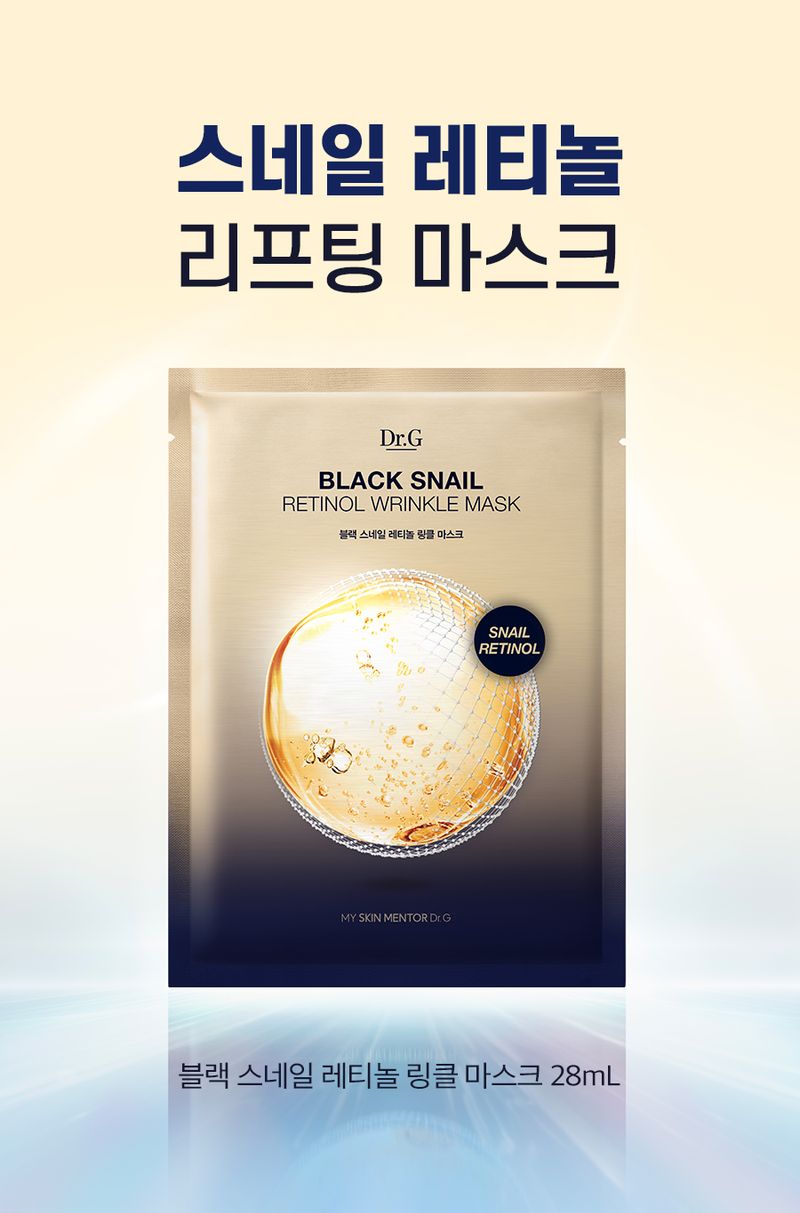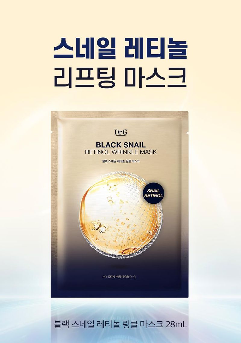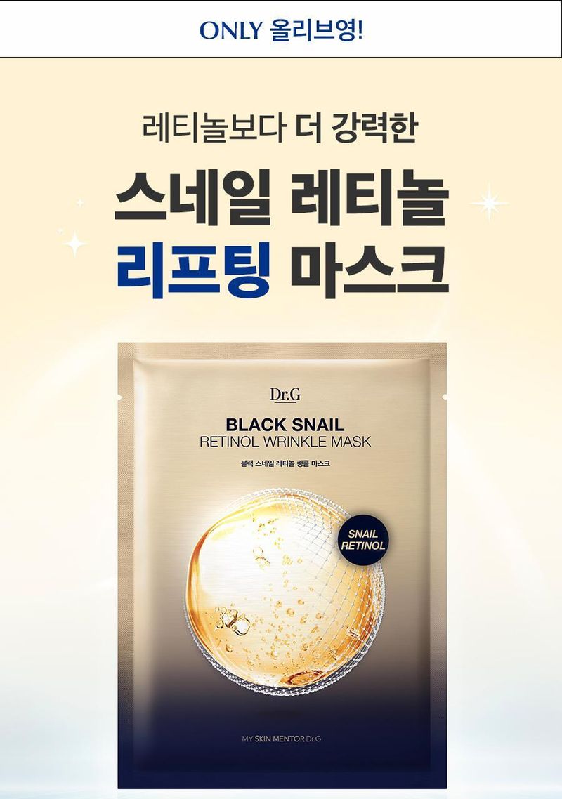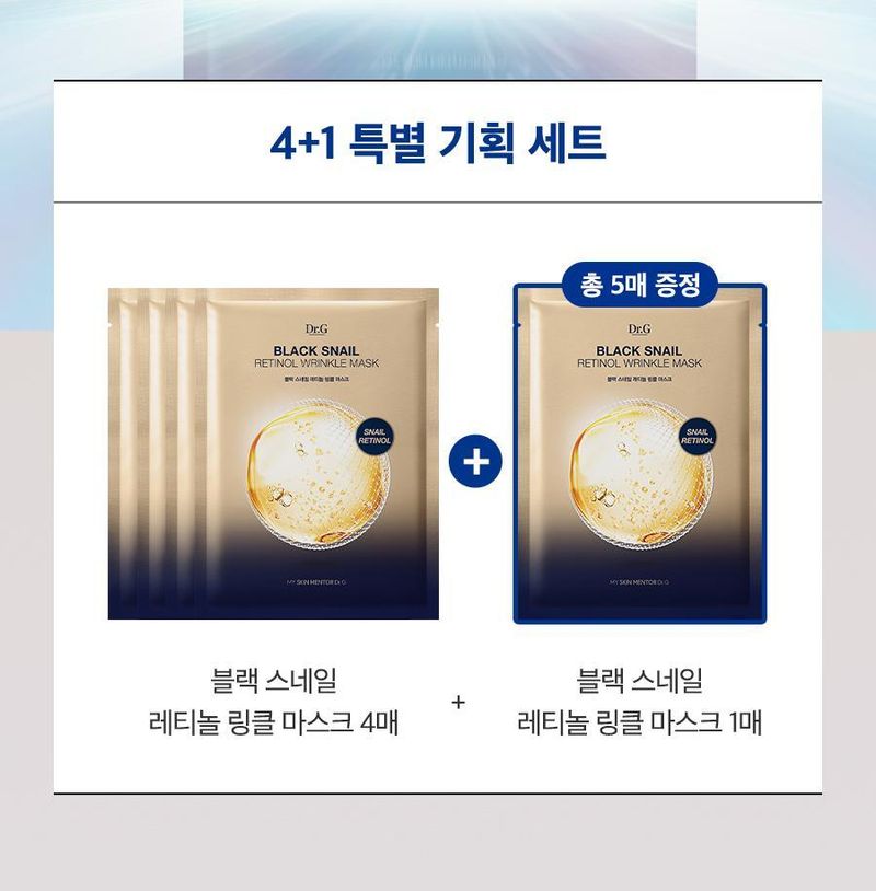 (24.12.31 ~ 25.02.28)商品資訊 韓國 Olive Young 特別優惠套裝 -Dr.G Black Snail Retinol Wrinkle Mask Sheet黑蝸牛視黃醇抗皺面膜 4 片(加送1片)