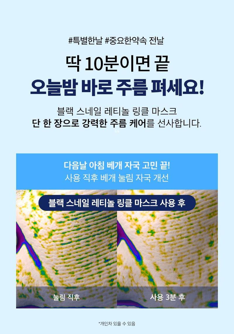 韓國 Olive Young 特別優惠套裝 -Dr.G Black Snail Retinol Wrinkle Mask Sheet黑蝸牛視黃醇抗皺面膜 4 片(加送1片) 只需一張紙即可發揮強效的抗皺護理作用,皺紋改善滿意度達 100%。 立即解決鏡子中看到的深層皺紋的問題,不僅在一次使用後就能改善皺紋,而且還能維持 72 小時的皺紋減少效果。 注入濃密安瓿的超細纖維片,厚度僅為頭髮的 1/100,緊密貼合皮膚曲線,甚至呵護細紋。 如何使用 1. 清潔肌膚後,使用爽膚水為肌膚做好準備。 2. 將面膜紙貼於臉上,使孔與眼睛和嘴巴對齊,並撫平以貼合臉部。 3. 約10-20分鐘後,取下面膜,輕輕拍打讓剩餘精華滲入皮膚。 【備註】 產品需要訂購,到貨日期需要按照官方發貨時序而定,預計需要大約10-20工作天左右到貨,實際到貨日期仍然需要依據官方發貨而定。 產品有機會因為官方缺貨而無法訂購,如果遇到缺貨或停產,我們會聯絡你安排退款。 聲明:本公司並沒持有任何品牌之版權。所有商標及版權均屬該品牌持有人,圖片及資料轉載只作分享用途,敬請留意。 |