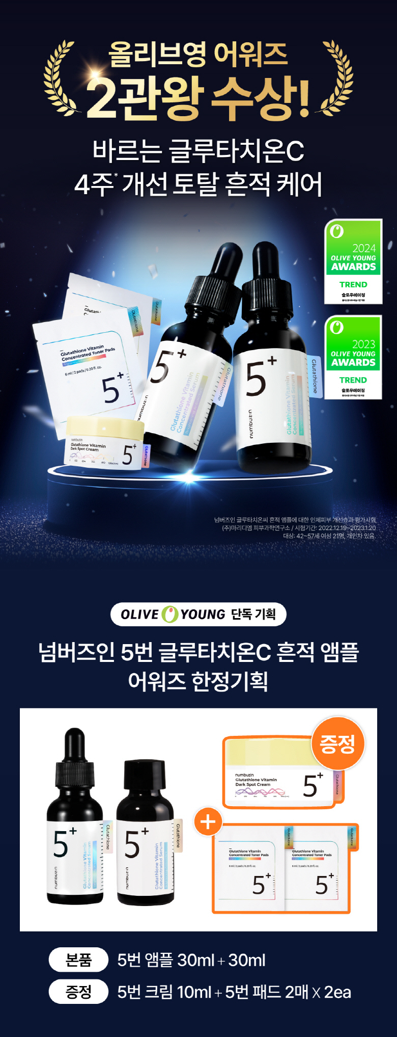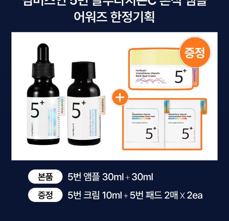 (24.12.09 ~ 24.12.15)韓國 Olive Young 特別優惠套裝 -★2024年得獎作品★ Numbuzin No.5+Vitamin Concentrated Serum穀胱甘肽 C 微量安瓶30mL (1+1特別套裝)