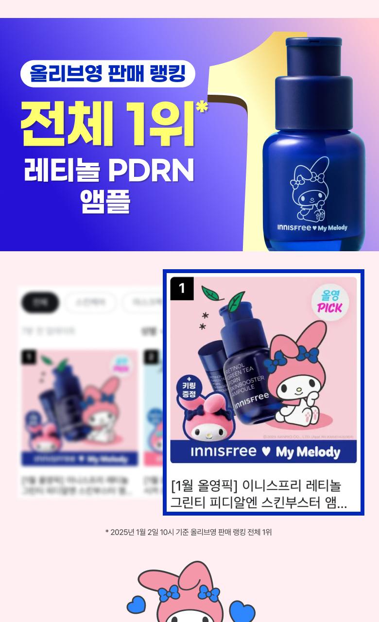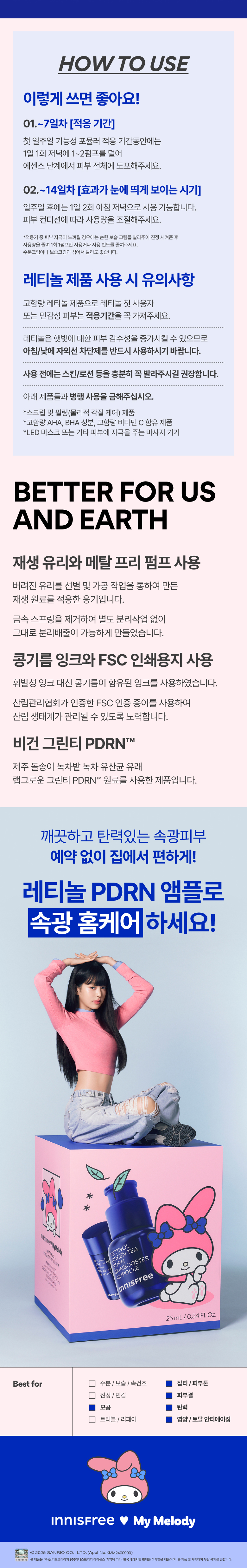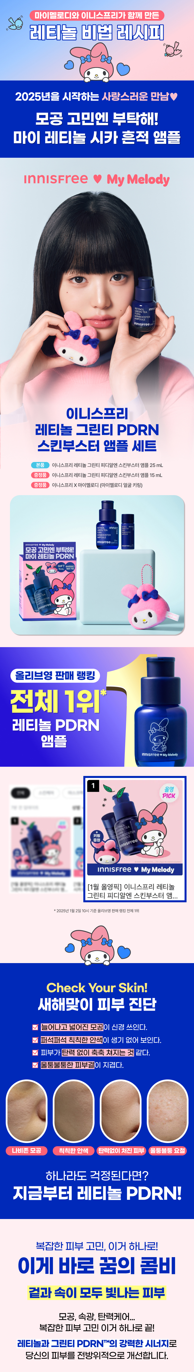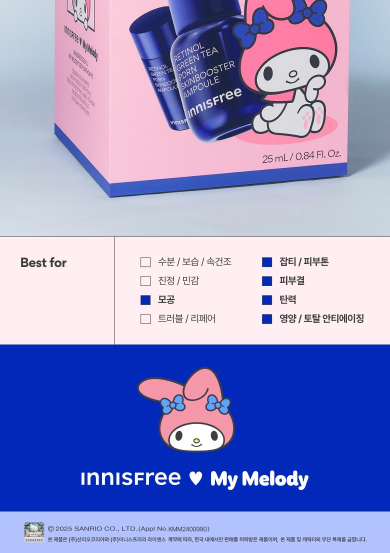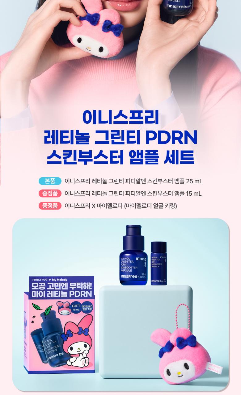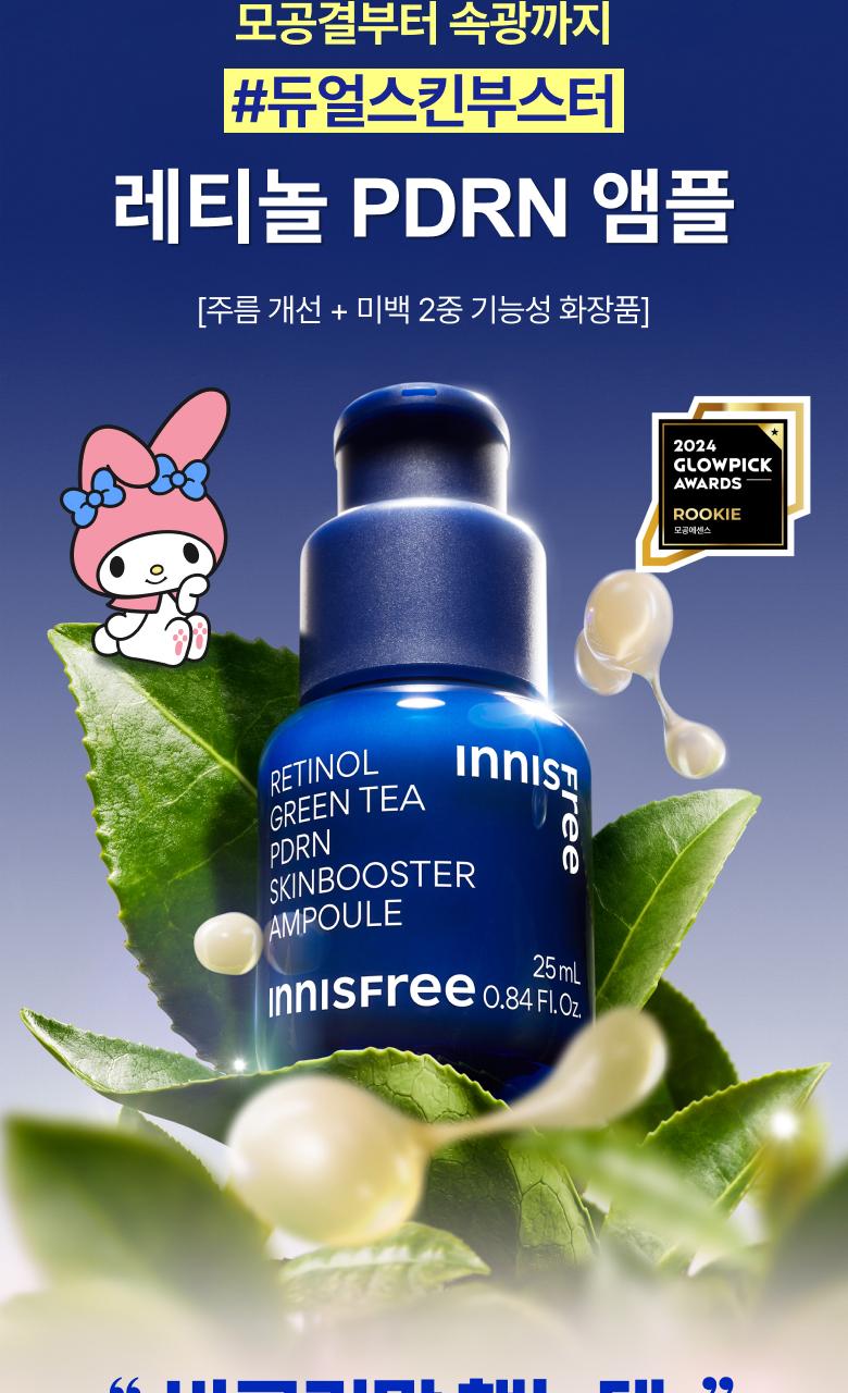 (24.12.31 ~ 25.02.28)韓國 Olive Young 特別優惠套裝 -INNISFREE Retinol Green Tea PDRN Skin Booster Ampoule視黃醇綠茶 PDRN 肌膚增強安瓶 25ml(加送15ml,My Melody鑰匙圈)