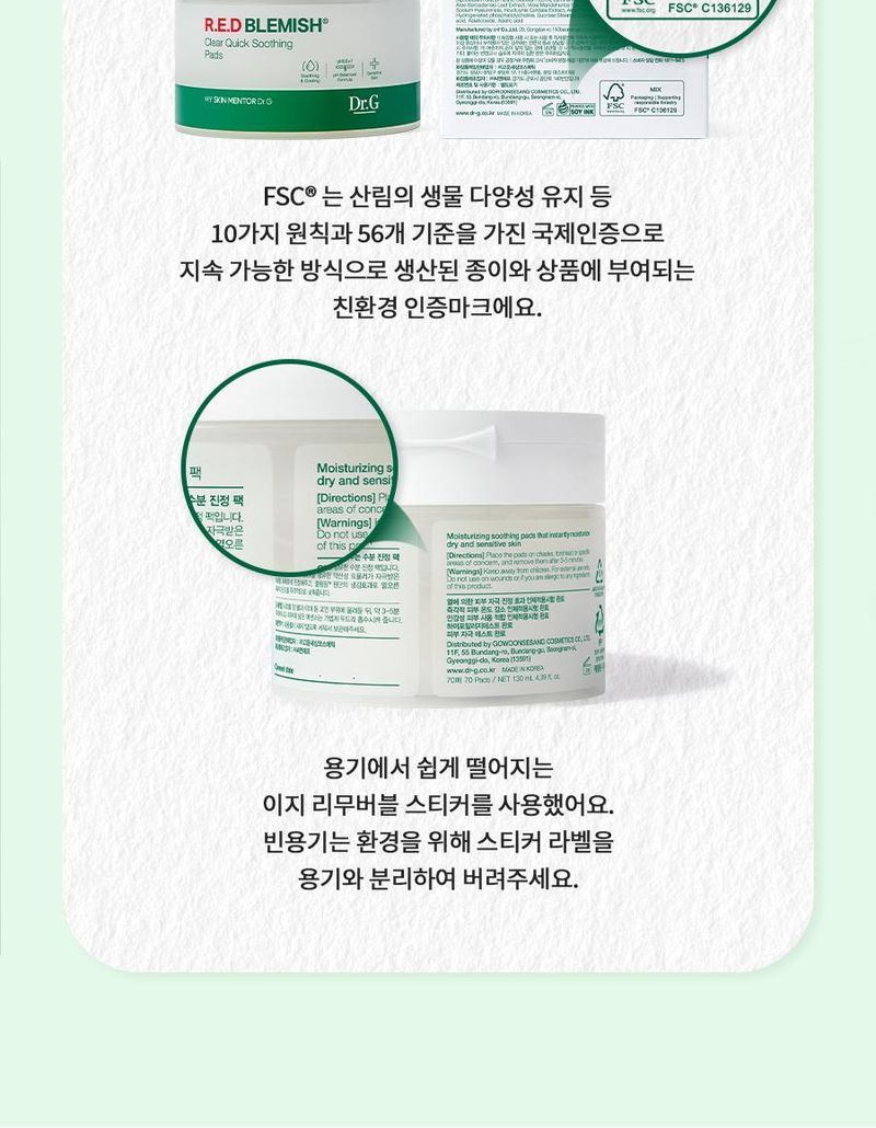 韓國 Olive Young 特別優惠套裝 - Dr.G Red Acne Mark Clearance Quick Soothing Pad 紅色痘印清除快速舒緩墊雙重規劃套裝 (70片+70片) (1+1套裝)