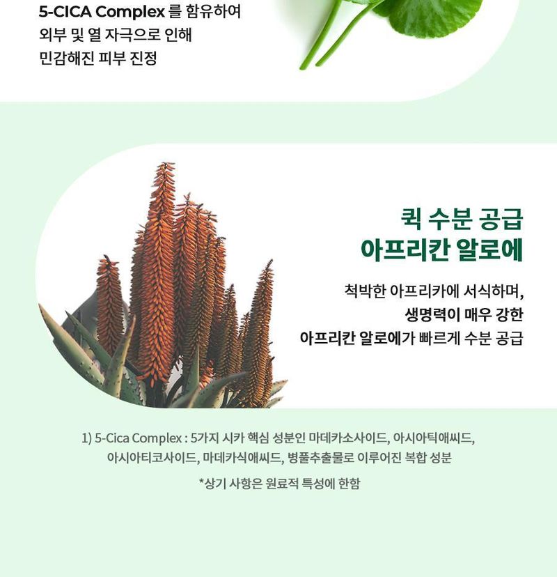包含89%的積雪草提取物和5-CICA複合物,這些成分有助於保護敏感肌膚並迅速補充水分。